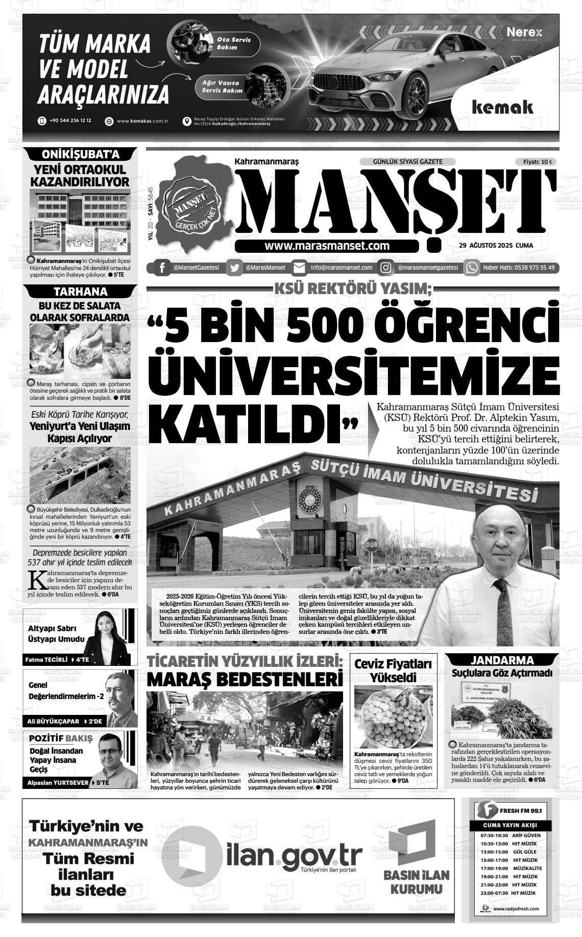 KAHRAMANMARAŞ MANŞET
