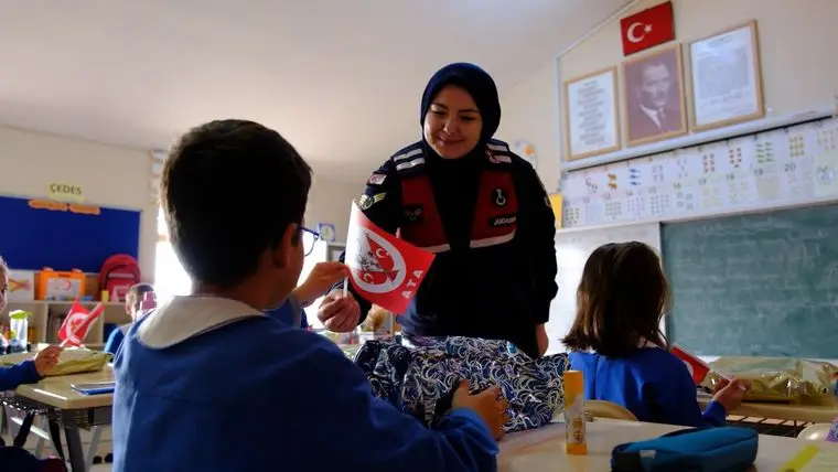 Bayburt Portalı – Bayburt İl Jandarma Komutanlığı Aile İçi Şiddetle Mücadele ve Çocuk Kısım Amirliği koordinesinde, okul yönetimiyle işbirliği içerisinde Uğrak İlkokulu öğrencilerine yönelik anlamlı bir etkinlik düzenlendi. 29 Ekim Cumhuriyet Bayramı kutlamaları çerçevesinde gerçekleştirilen programın temel amacı, minik öğrencilere bayrak sevgisini aşılamak ve milli duyguları pekiştirmekti.